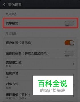 2、在摄像设置里把简单模式切换为专家模式。