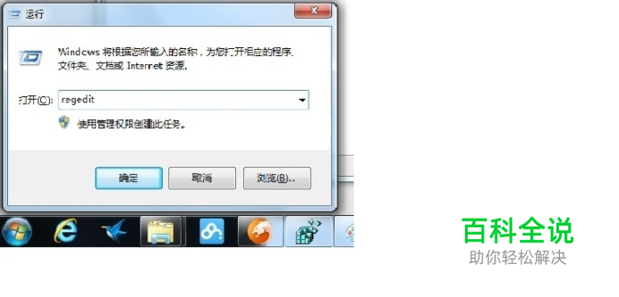 按Win+R键,弹出运行窗口。输入regedit打开注册表