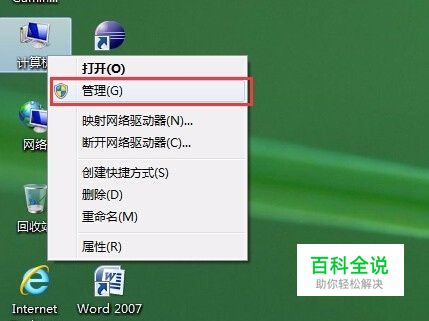 找到桌面上“我的电脑”图标鼠标点击右键管理