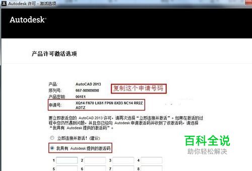 点击一下【补丁】按钮。 然后复制出现在【激活码】一栏的那些字母,把那些字母粘贴到cad2013软件里面的【我有autodesk提供的激活码】下面的框框里面去。 最后点击激活就可以啦!