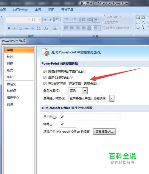 勾选【在功能区显示“开发工具”选项卡】,确定。