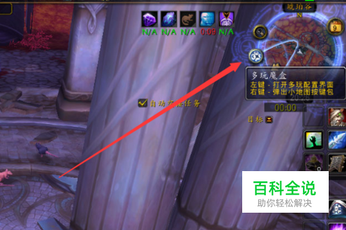 首先登录进入游戏,在游戏界面右上角的小地图旁边有一个插件的图标(鼠标指上去会提示插件的名称)。点击插件的图标就能打开插件的配置页面。