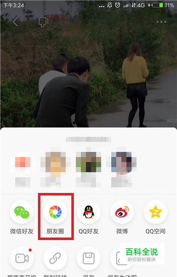 接下里会需要选择分享方式,选择一种后点击【朋友圈】选项。