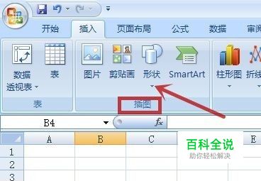 用鼠标左键单击“插图”功能组(图中红框)中的“形状”功能(图中红色箭头所指)