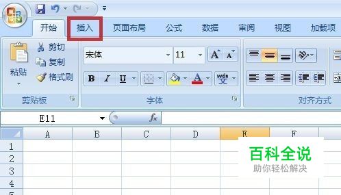 新建一个EXCEL工作表,用鼠标左键单击顶端的“插入”选项卡(图中红色箭头所指)