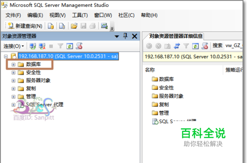 首先需要知道是导出哪个一个数据库的数据。使用SQL Server Management Studio连接上这个数据库。