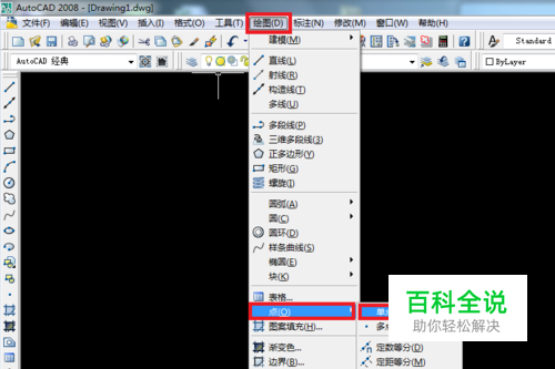 打开AutoCAD软件,这里以AutoCAD2008为例, 绘图——点——单点