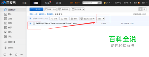 登录百度云(http://pan.baidu.com),找到要修改扩展名格式的文件
