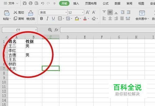 打开需要处理的EXCEL,如下图性别一列就空白需要填充