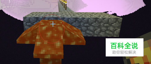 在平台边缘的一格放上岩浆,等2秒钟之后,收回岩浆,再在刚才放岩浆的旁边一格放上水,这时可以看到,下面形成了石柱,等石柱形成好之后,收回水。当然这种方法总有一些空缺的地方,补一下就好了。