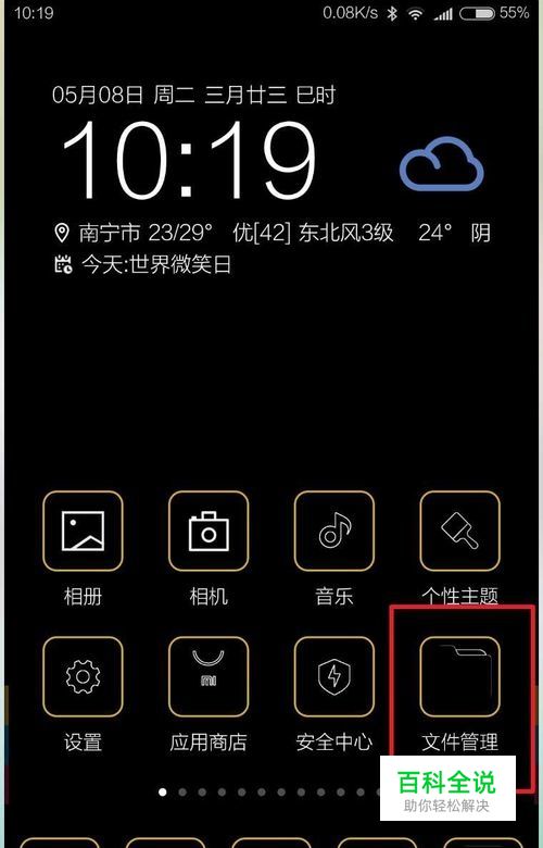 打开你的手机文件管理器,然后呢点击管理器里面的手机。