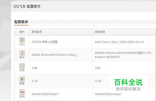 可以看到QQ飞车对电脑配置的要求。