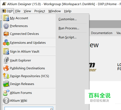 第二步:点击左上角的“DXP”在弹出的菜单栏里点击"Preferences",会弹出一个框。