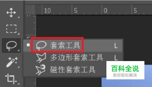 然后再PS软件的左边显示的工具栏找到套索工具,如图所示,点击套索工具