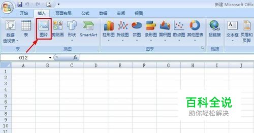 第一步:打开excel表,菜单栏“插入”中选择“图片”按钮。