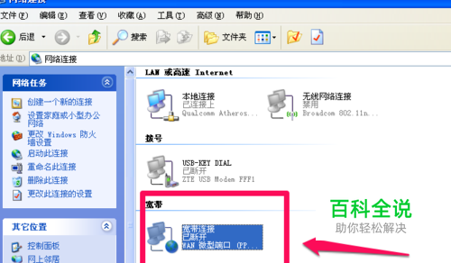 在电脑上面进入 网上邻居,点击宽带连接。