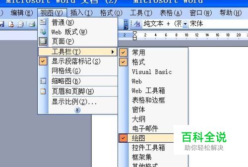 在“视图”菜单中执行工具栏命令,打开绘图工具栏, 如下图;