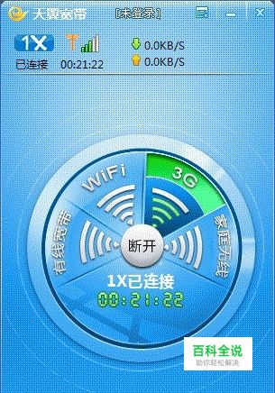 利用天翼宽带客户端进行有线连接: 点击主界面上的有线网络“连接”按钮,有线网络连接成功后完成网络接入。