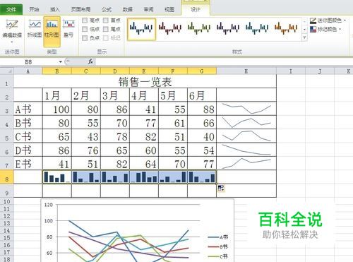 分析数据时常常用图表的形式来直观展示,有时图线过多,容易出现重叠,现在2010版中可以在单元格中插入迷你图来更清楚的展示。