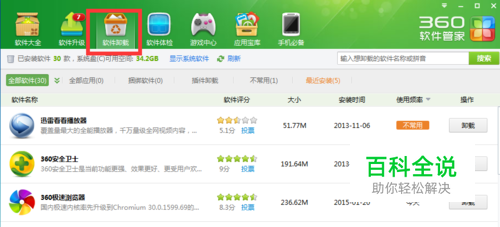 方法2:使用第三方管理软件卸载,如360软件管家。 软件卸载-卸载。