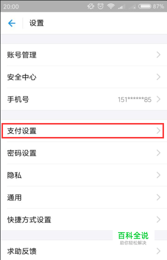 在设置列表中,选择支付设置选项,如果不是本账户开通的,可以通过账户管理进行切换帐号