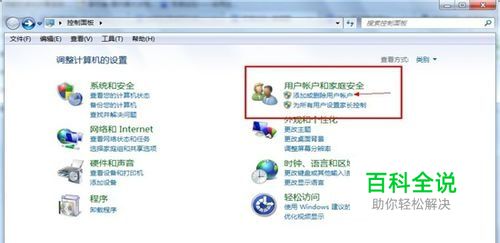 在控制面板中,选择【用户账户和家庭安全】下的【添加或删除用户账户】。