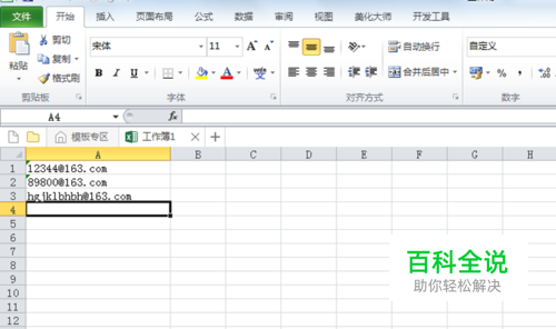 接着在a列任意单元格中直接输入邮箱用户名即可,查看效果。