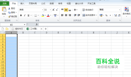 首先启动excel2010,假设在a列输入邮箱地址,选择a列。