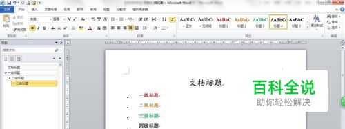 设置各种样式,包括文档标题样式、一级标题样式、二级标题样式、三级标题样式、四级标题样式、正文样式。其实还可以设置更多级别标题的样式,因举例,做到四级标题样式。各种样式根据自己的需要进行设置,本例设置好的样式如下图。因本例重在对样式集进行操作,所以对样式的设置细节不作详解。