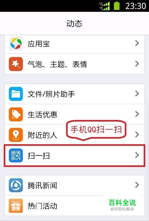 第一种情况,直接扫描手机以外的二维码,比较简单,可打开手机QQ软件的“动态”功能里的“扫一扫”功能、微信的“发现”功能里“扫一扫”功能、360手机卫士的“应用工具”里“安全二维码”扫描、或其它二维码扫描软件,手机相机镜头对准二维码即可直接扫描安装。