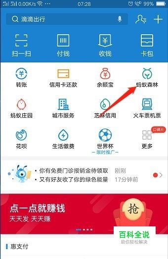 第一步:我们找到手机上的支付宝软件,打开后我们在支付宝中找到:蚂蚁森林,点击进入蚂蚁森林。