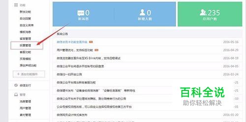在微信公众号后台,找到并点击“功能”栏目下的“投票管理”,如下图所示。