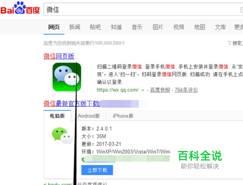首先用电脑搜索引擎搜索“微信”。出来结果后点击后缀官网字样的标题。
