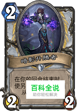 前期小随从: 亡灵药剂师、暗影升腾者、焦油爬行者等等,选择去带很多的小随从,是因为前期需要撑住场面,只有拖到打后期才是真正的爆发阶段。所以带了足够多的回血、低费、嘲讽、buff类随从。目的就是hold住前期!