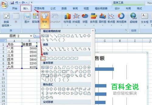 具体步骤是:在“插入”菜单栏里选择“形状”,根据自己需要选择一个形状,我选择的是“矩形”。