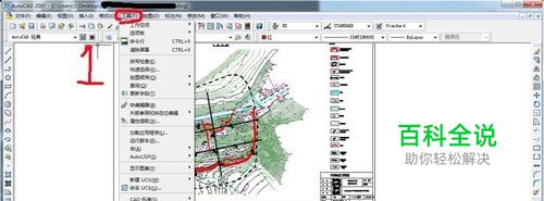 点字体选择框的关闭按钮,进入CAD工作界面。在菜单栏点击工具,选择选项。
