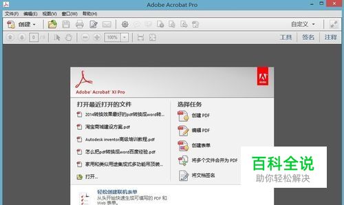 从Adobe官方网站上下载Adobe Acrobat XI Pro这个软件,然后安装到我们的电脑上,怎么下载怎么安装这里就不多说了!安装完后界面打开如下图: