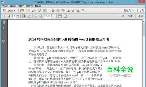 准备好我们要提取的pdf文件,这里还是以我下载的《2014转换效果最好的pdf转换成word转换器及方法》这个pdf文档为例进行讲解,下载下来后用Adobe Acrobat XI Pro 打开如图: