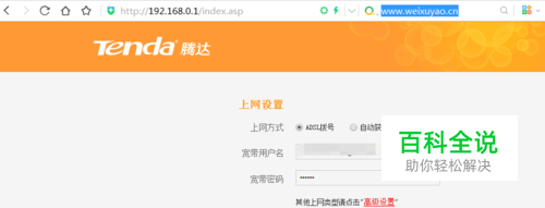 第一步: 连接好线,外线要插入wan 的端口,然后再用网线插入从其余的4个端口中的其中一个端口,并与电脑相连(将IP设置为192.168.0.X(2-254之间)不是特别懂的用户请设置为自动获取)。然后打开ie,在地址栏中输入192.168.0.1 如图
