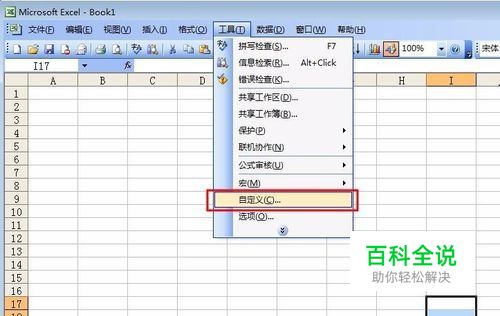打开excel,如图所示,选择“工具”,点击“自定义”