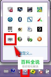 在任务栏的最右端,单击隐藏图标按钮,然后双击打印机图标: