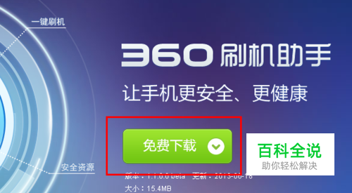 在浏览器中打开“360刷机助手”官方网站(shuaji.360.cn),在页面中下载360刷机助手,如图所示。下载完成后安装并启动刷机助手。
