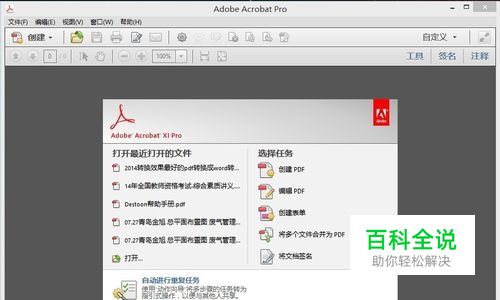 从Adobe官方网站上下载Adobe Acrobat XI Pro 这个软件并安装到我们的电脑上,如何下载安装破解不是本经验要讨论的,安装完后打开软件其主界面如图所示: