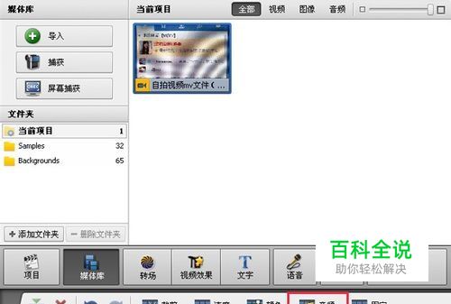 添加短片到视频噪音消除软件上之后,看到在轨道上方出现菜单啦的。点击“音频”这一栏,就可以到里面去设置关于消除杂音方面的处理的。