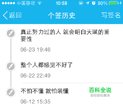 可以看到该好友的所有的历史个性签名了,同样的方法也适用于自己