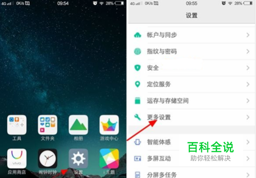 想要成功获取vivo x9Plus手机ROOT权限,我们需要先打开其USB调试开关: 在桌面点击“设置”按钮,并在其设置界面中点击“更多设置”项。