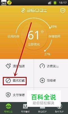 进入手机360卫士首页,点击箭头标记的选项,如图所示