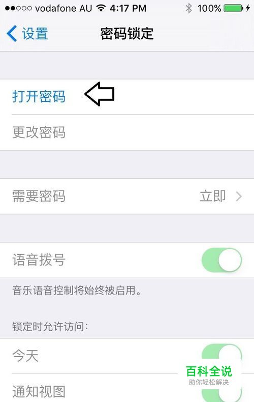此时系统自动调到设置界面,打开密码的菜单已经有了(蓝色)。点击打开即可生效(还会需要输入一下正确的密码)。