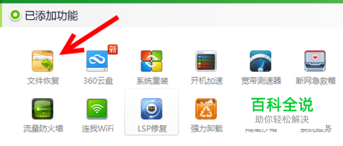 在“已添加功能”中找到“文件恢复”入口并点击。如果找不到该按钮,那么可能是因为你还没有添加该功能,在“未添加功能”中找到“文件恢复”并点击,系统会自动下载并添加。