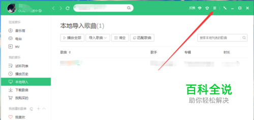 进入到QQ音乐的主界面之后,在右上角会看到一个有一个主菜单(鼠标悬停会显示名称)。